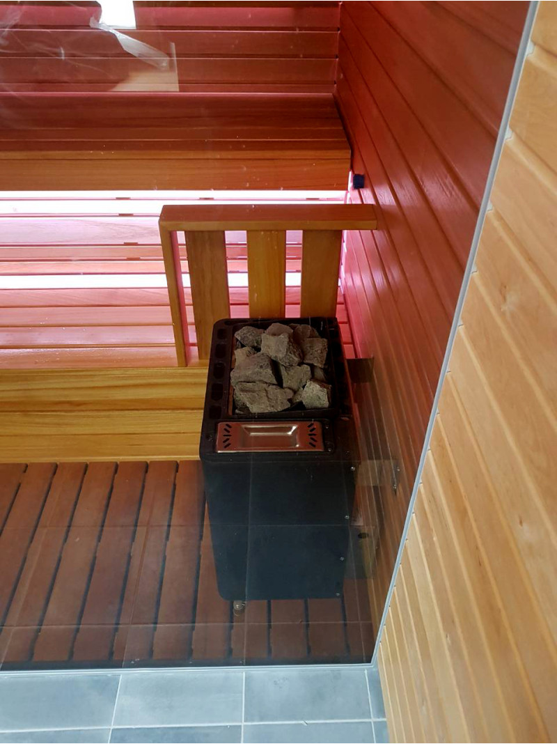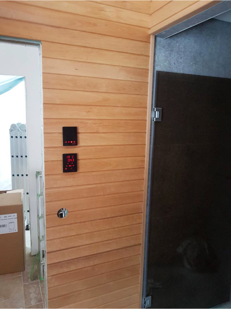 Dit saunaproject combineert twee saunamodi - infrarood- en stoomsauna's. De modus kan eenvoudig worden ingesteld met het bedieningspaneel dat buiten de sauna is gebouwd.