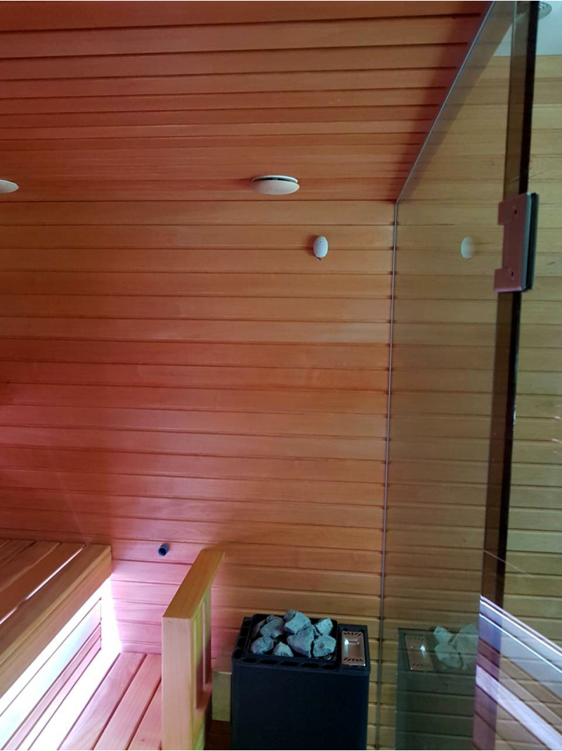 De sauna is uitgerust met luidsprekers zodat u naar uw favoriete muziek kunt luisteren terwijl u geniet van de sauna.