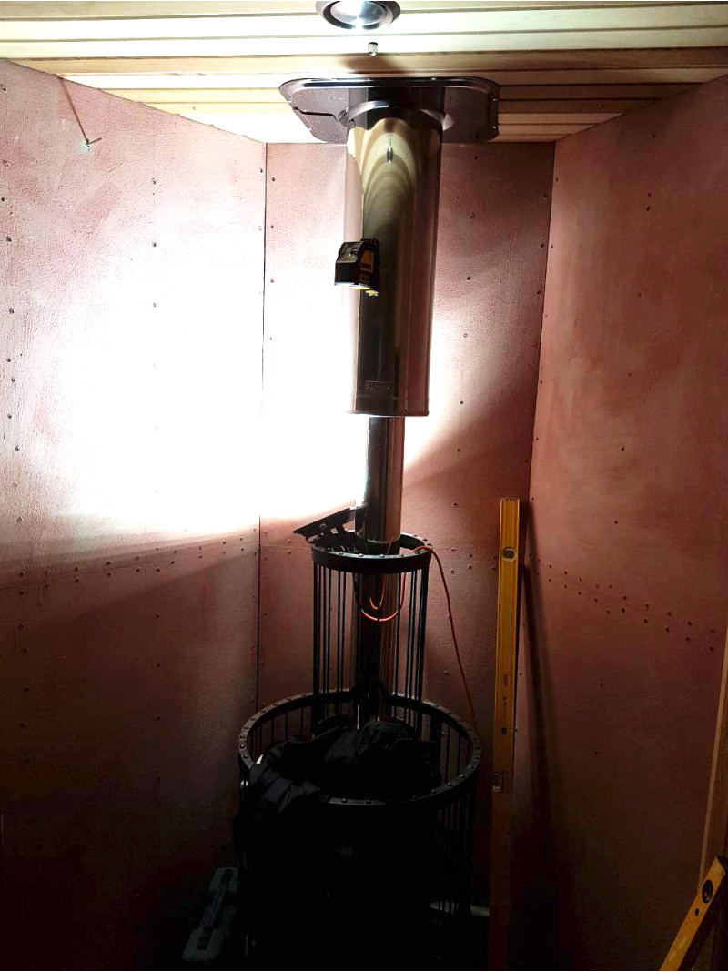 In de ontvangstruimte hangt een eikenhouten, 20 l koudwater-gietkuip om af te koelen na de sauna. Het is een geweldige en gemakkelijke manier om te verjongen.