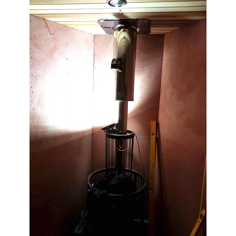 Er is gekozen voor de houtkachel Harvia Legend 240 DUO met een externe vuurhaard, een gietijzeren deur en een glazen raam gevuld met een grote hoeveelheid speksteen, waardoor je zelfs bij afwezigheid van hoge temperaturen kunt genieten van de warmte die ze uitstralen. voor de middelgrote sauna. Ovenkasten - Harvia Legend met verlichting.