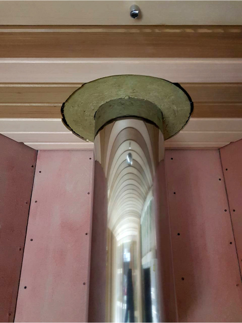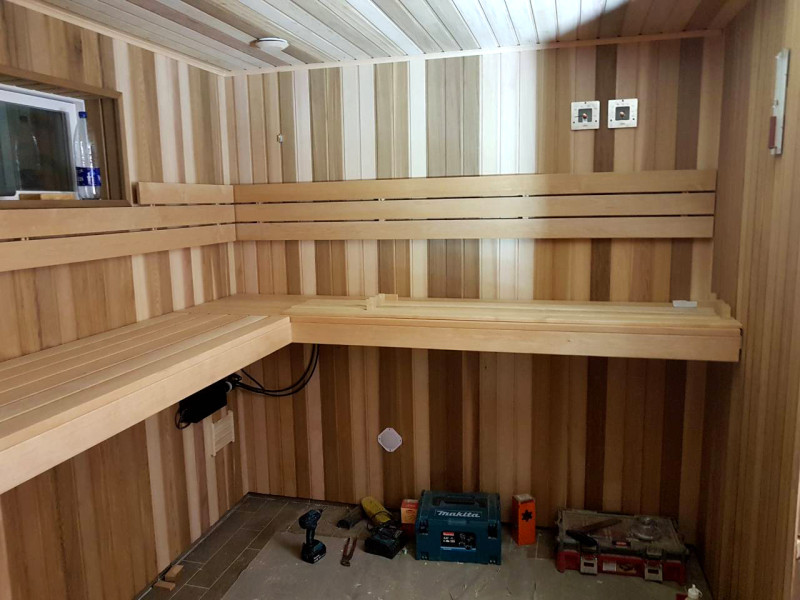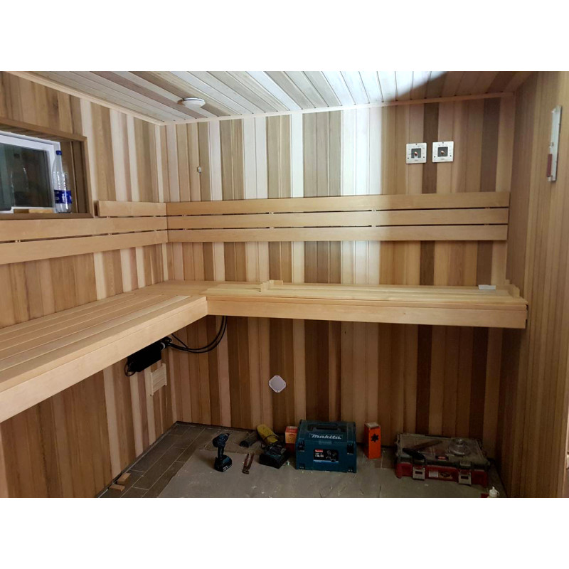 Vanwege de hoge duurzaamheid van de sauna is gekozen voor elzenhout en Canadees cederhout. Cederhout heeft de neiging om de minste hoeveelheid warmte op te nemen, wat de sauna meer comfort geeft.
