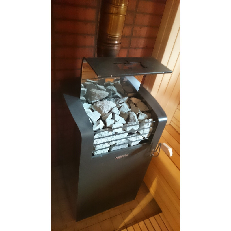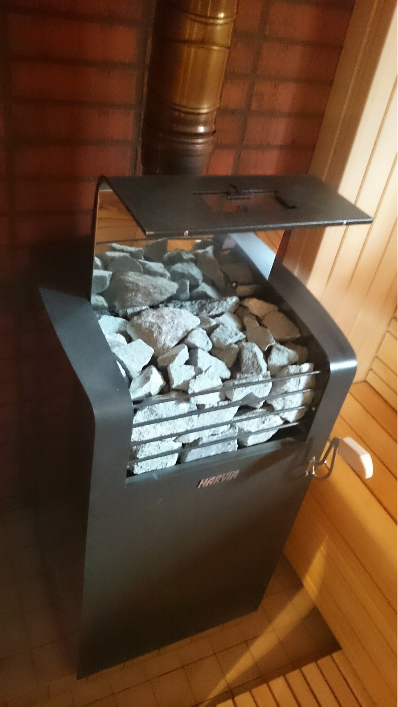 Er is ventilatie voorzien om een goede luchtcirculatie in de sauna te garanderen en er is een schoorsteen met verwarming geïnstalleerd. Het model heater is van het gesloten type, dat warmte ophoopt en veel stoom afgeeft. Tijdens het verwarmen is het deksel gesloten en wordt water op de stenen gegoten - het wordt geopend.