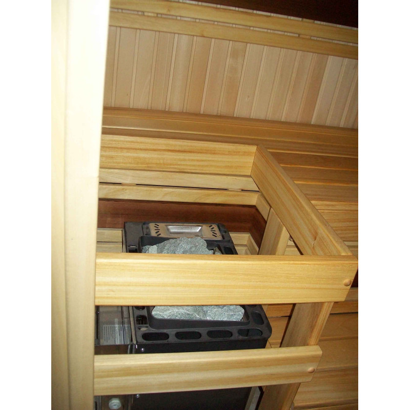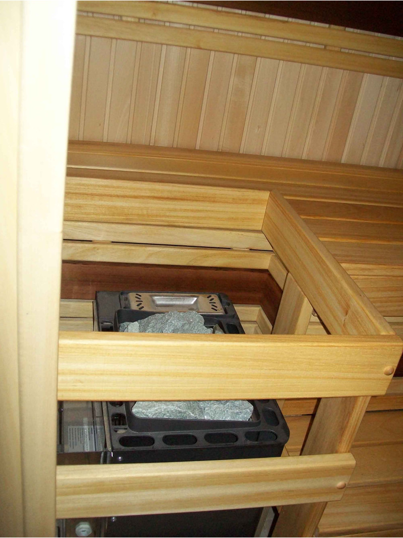 De warmtebron is de EOS Bi-O Thermat elektrische saunakachel die aan de muur wordt gehangen. Deze heater is geschikt voor langdurig gebruik in privé sauna's. De heater heeft een verdamper met een geïntegreerde geurbeker. Het bedieningspaneel Xenio Combi CX110C wordt apart buiten de sauna geïnstalleerd.
