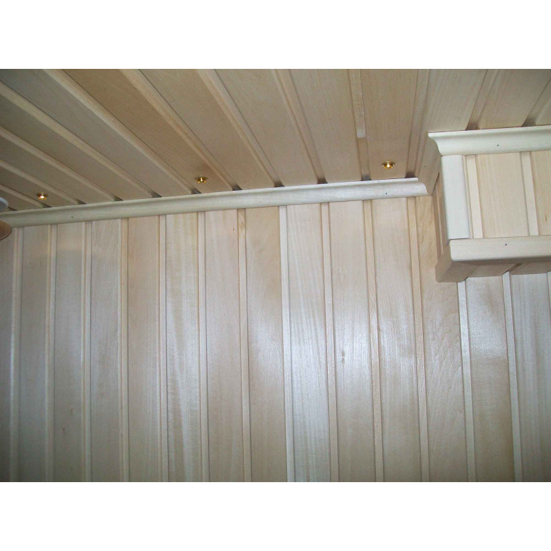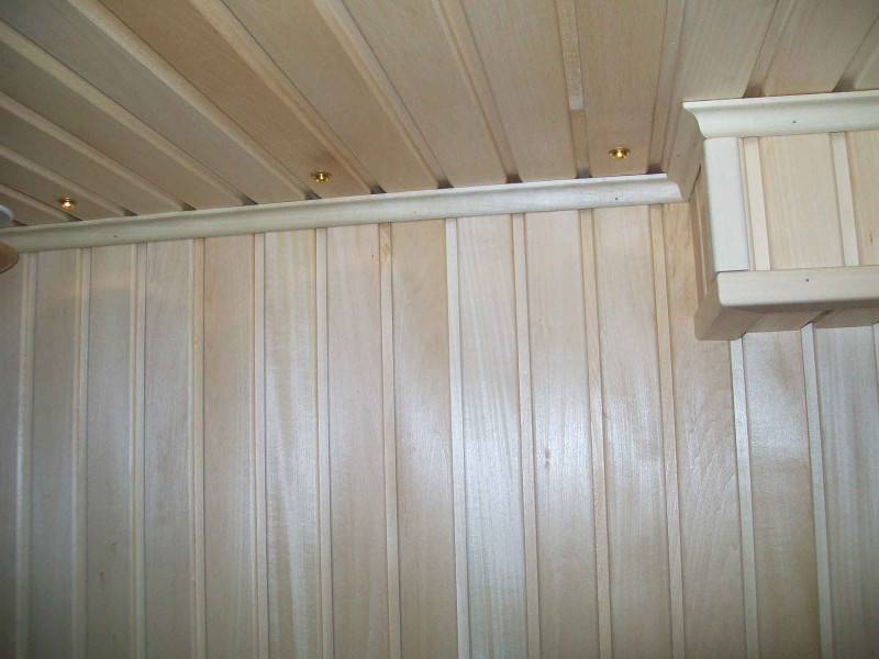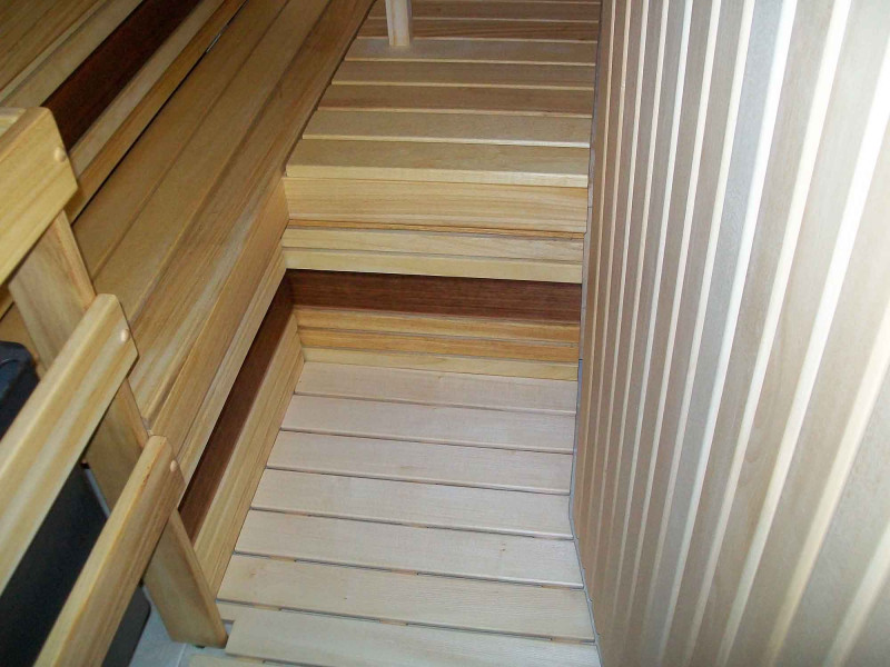 De wanden zijn bedekt met een speciale saunalak op waterbasis, de banken zijn geïmpregneerd met paraffineolie. Vernis beschermt hout tegen wrijving, hitte, heeft geen onaangename geur. Met paraffine gecoat hout is gemakkelijker schoon te maken en te onderhouden.
