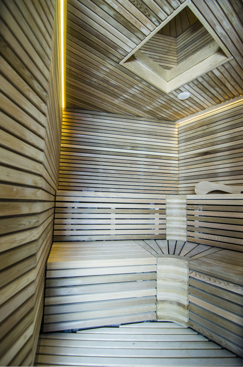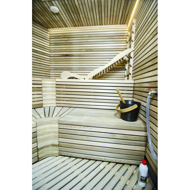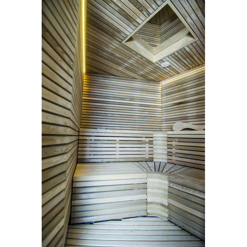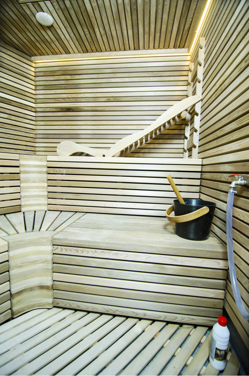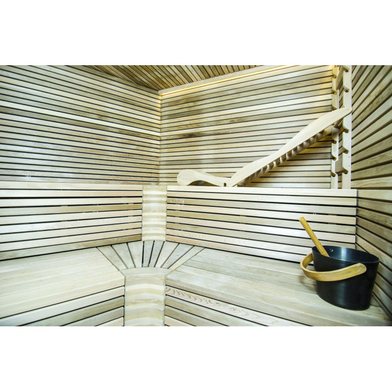 De wanden en banken van de sauna zijn gemaakt van cederhout van de hoogste kwaliteit.