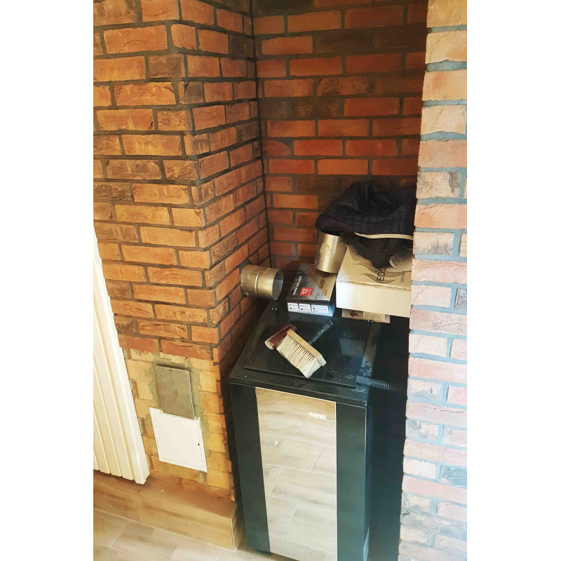 De heater kan tot 100 kg stenen bevatten. Brede externe vuurhaard. Aanbevolen van 10 m3 tot 25 m3 voor sauna's. Creëert veel overvloedige en aangename stoom in de sauna, warmt snel genoeg op en houdt warmte lang vast. Gevuld met olivijn diabaasstenen, waarvan het reliëf wordt gevormd door barsten, waardoor het meer warmte ophoopt en het water veel sneller verdampt door het grote oppervlak.