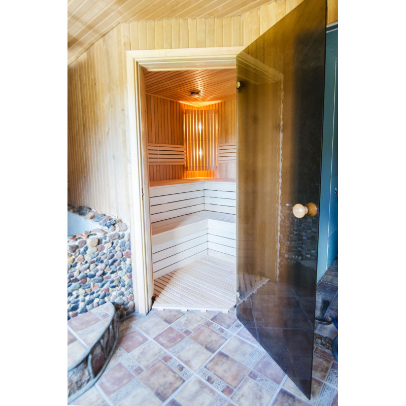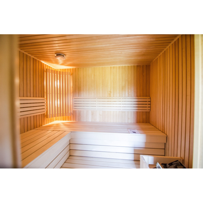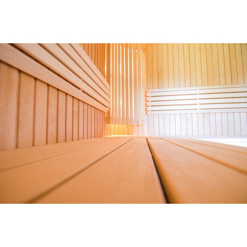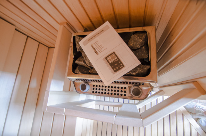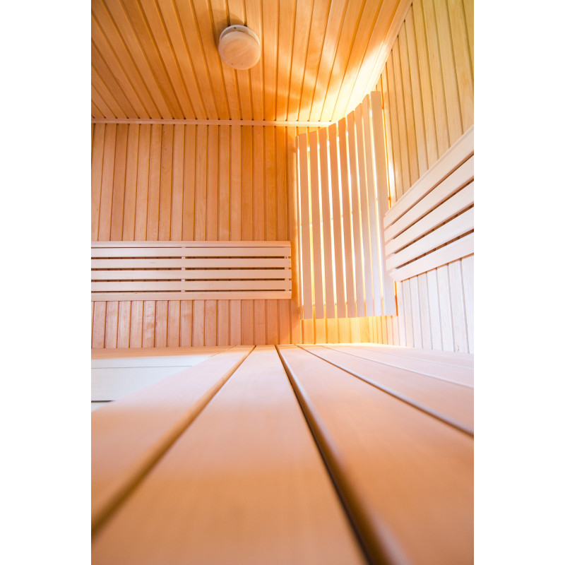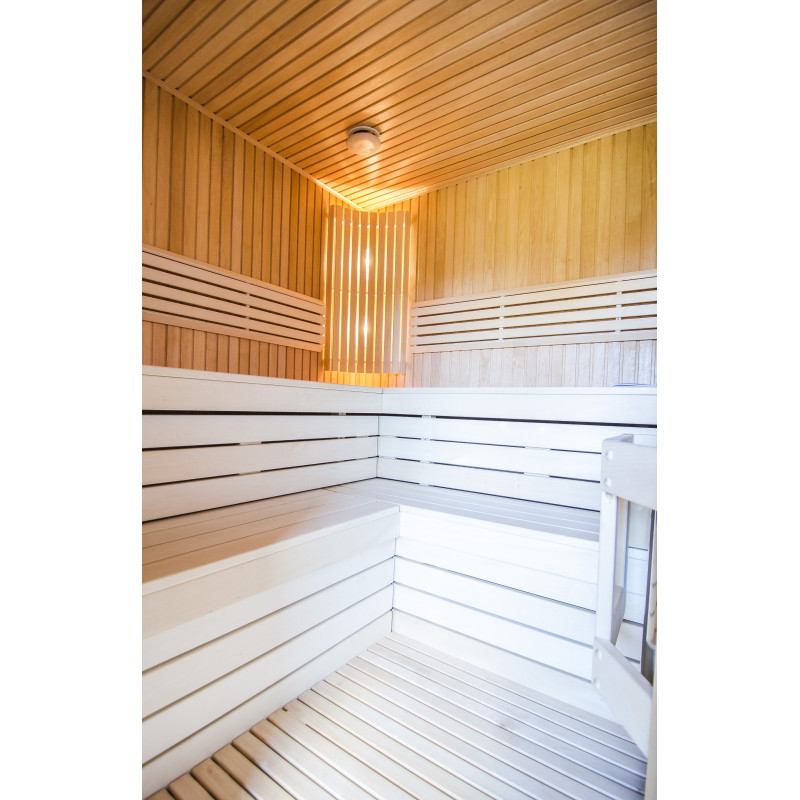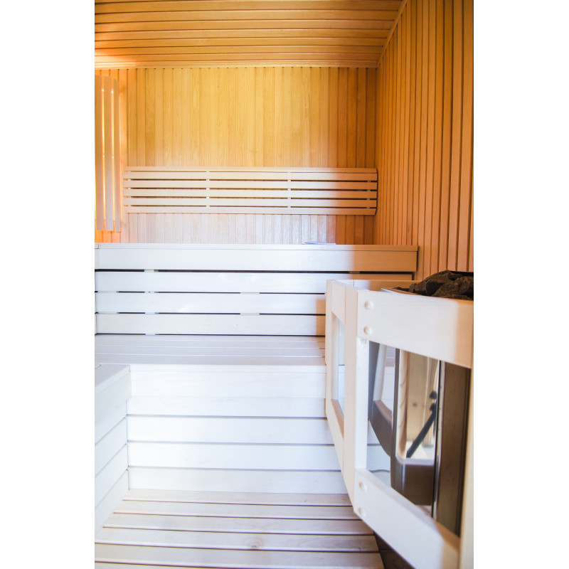Verlichting - twee Harvia lampen geïnstalleerd onder de rugleuning.