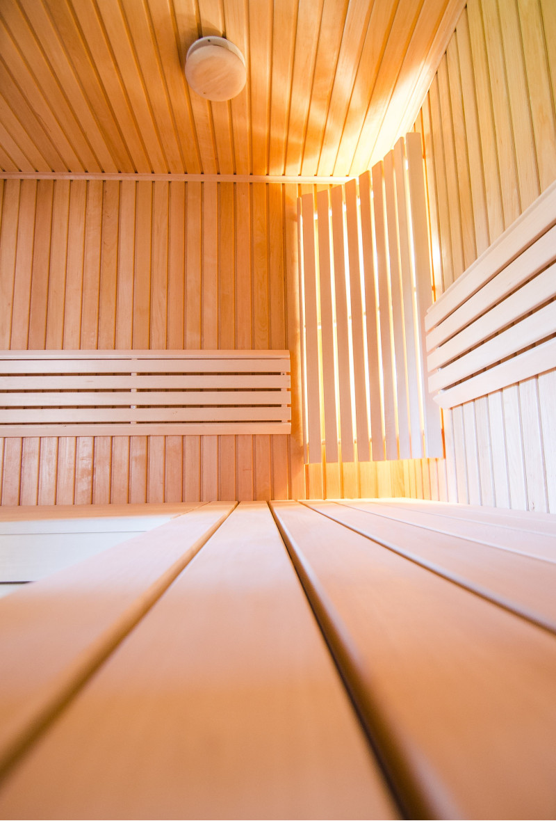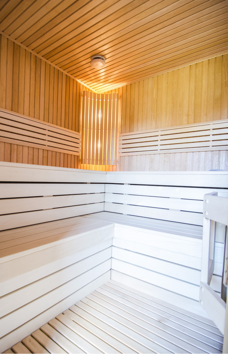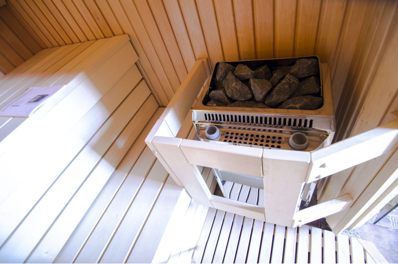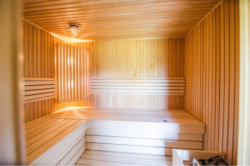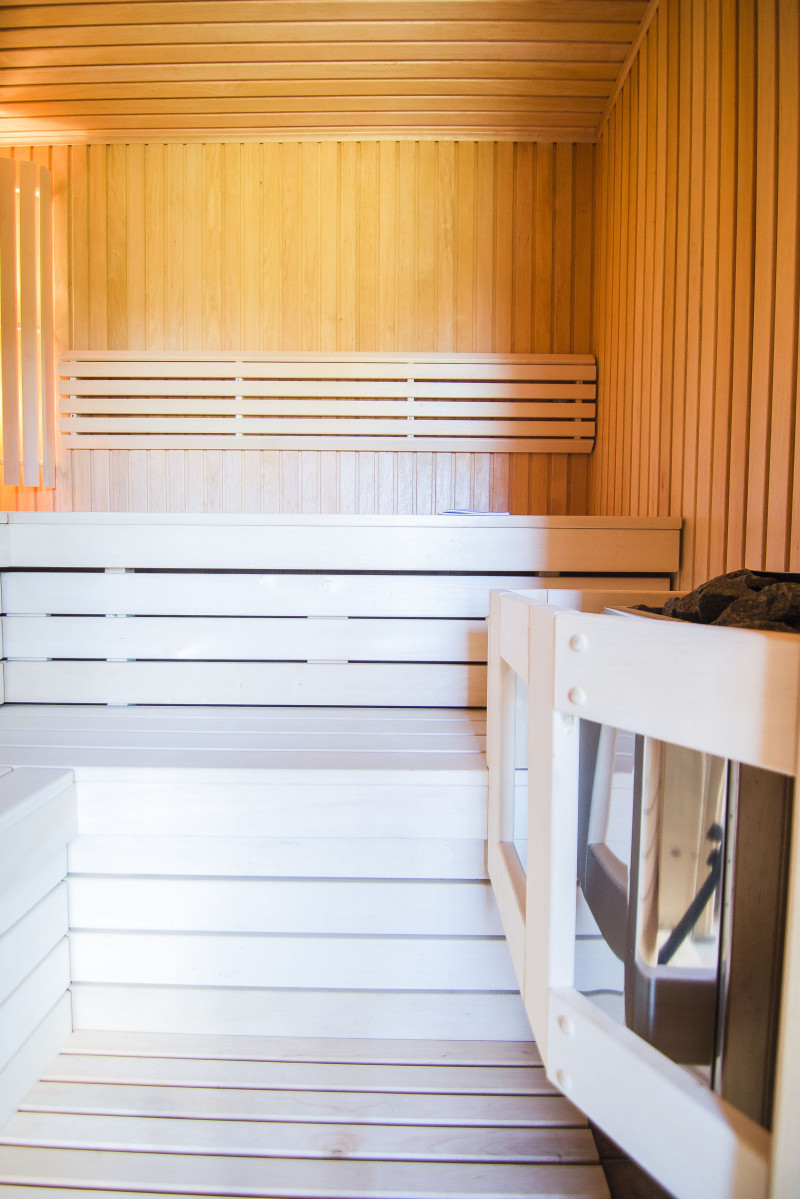 Verlichting - twee Harvia lampen geïnstalleerd onder de rugleuning.