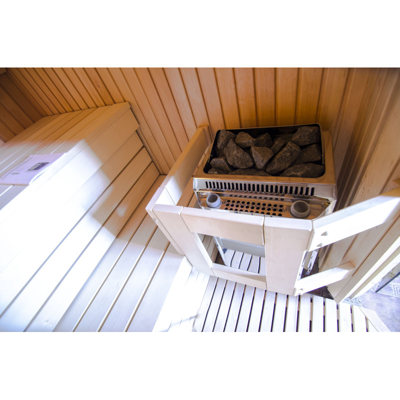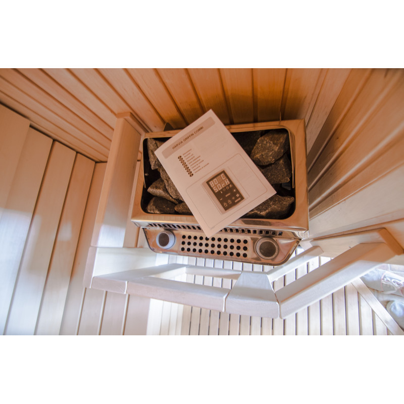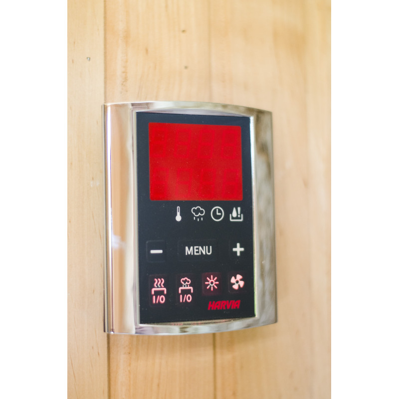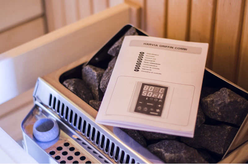Kachel heeft een aparte regelunit Harvia Griffin Combi CG170C voor het aansturen van de Combi kachel en tevens de kachel met verdamper. Het bedieningspaneel wordt buiten de saunaruimte geïnstalleerd.