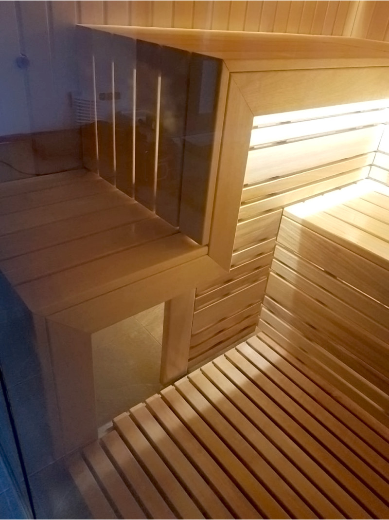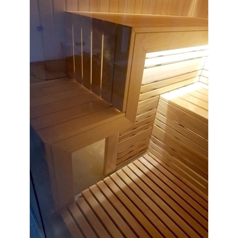 Abachi-hout voor banken en rugleuningen is een goede keuze, omdat dit kwaliteitshout niet oververhit raakt en het onmogelijk is om jezelf te verbranden als je op banken van dergelijk hout zit. Cederhout geeft ook een moderne uitstraling aan het interieur van de sauna.