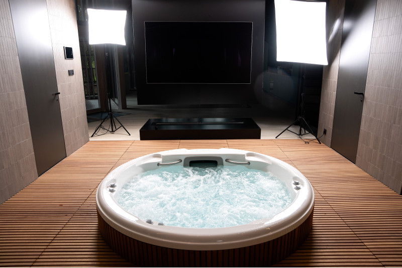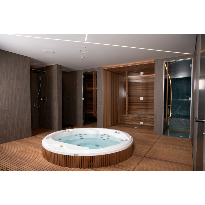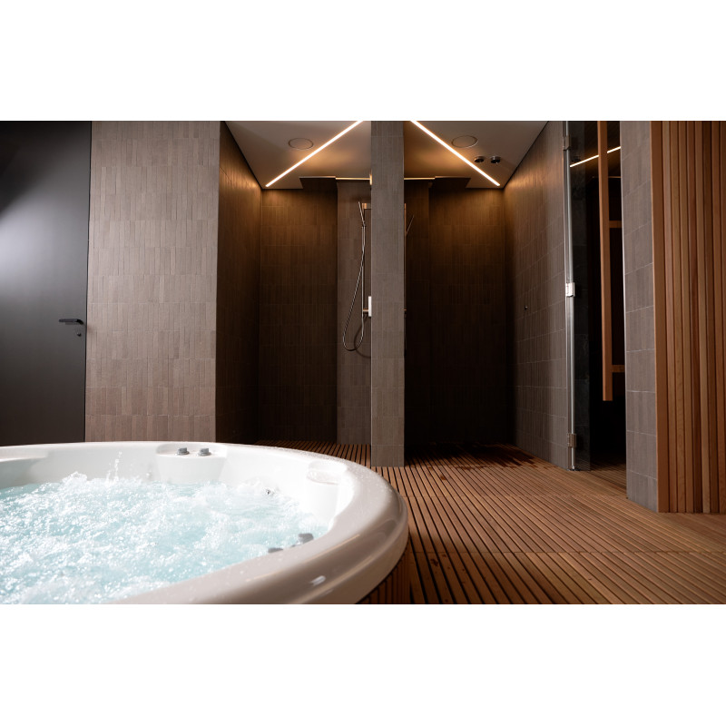 Voor dit project werd gekozen voor een hydromassagebad van de oorspronkelijke fabrikant "Jacuzzi" , waarbij alle aansluit-, opstart- en testprocedures volledig volgens de technische normen werden uitgevoerd. Dit zwembad staat symbool voor comfort en betrouwbaarheid en garandeert een eersteklas ontspanningservaring.