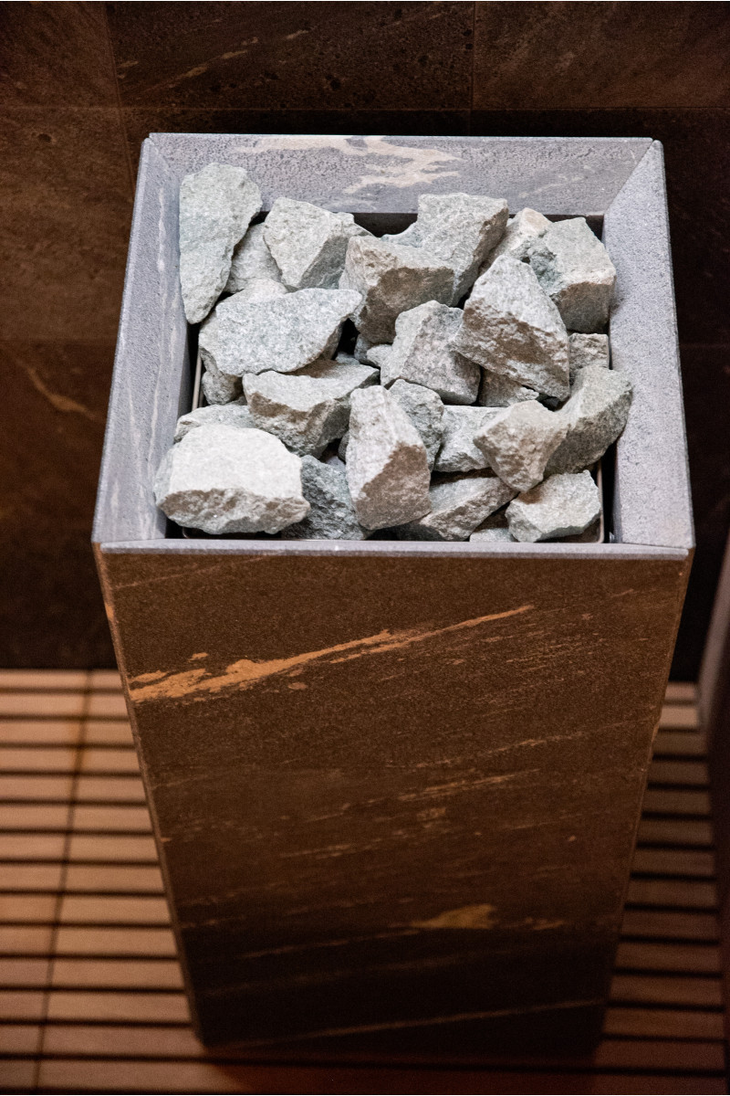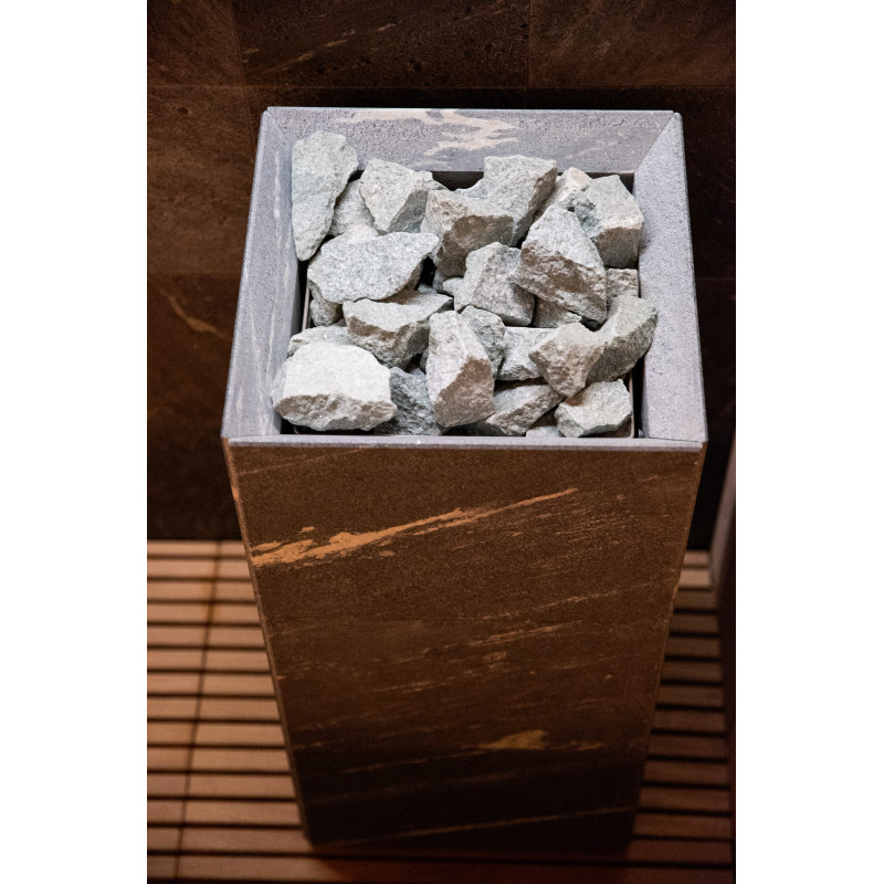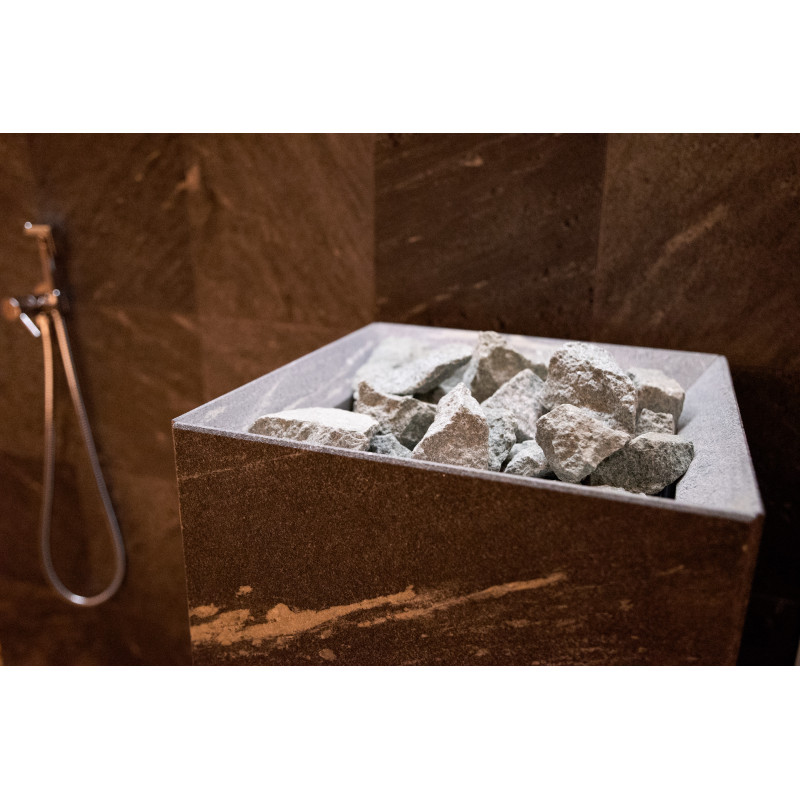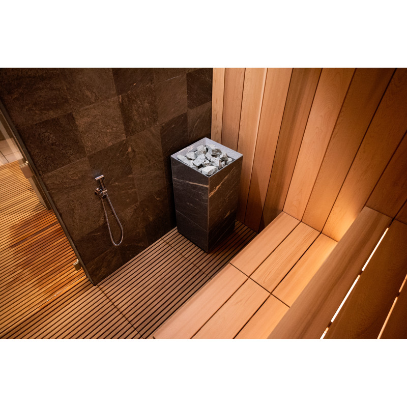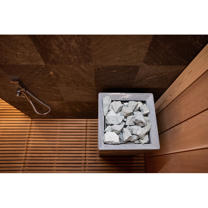 Elektrische saunakachel Tulikivi Tuisku Nobile met Harvia Xenio Combi CX110C besturing en een Harvia 4,5kW stoomgenerator;