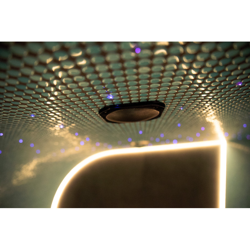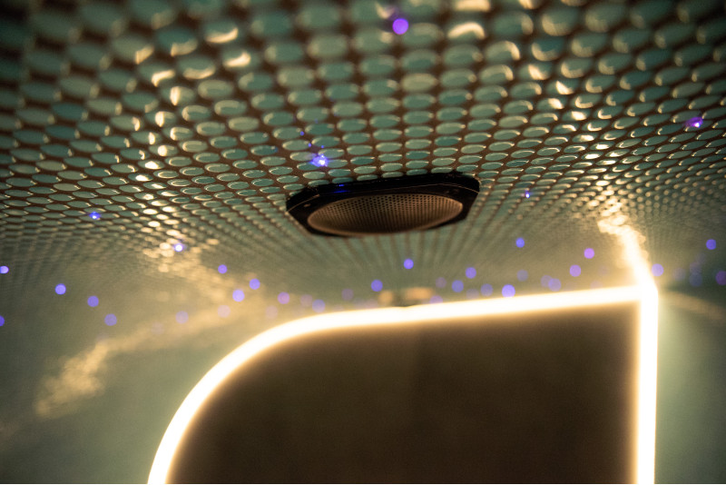 Het glasvezelsysteem "Starry Sky" en de kleurveranderende ledverlichting creëren een unieke sfeer. Onder de banken en langs de achterwand is extra ledverlichting aangebracht;