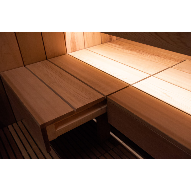 De sauna combineert op verfijnde wijze design en kwaliteit: