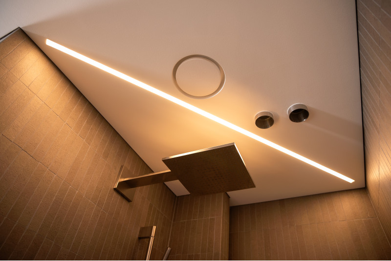 Schuin plafond voor betere stoomcirculatie;