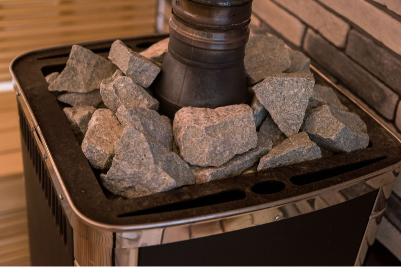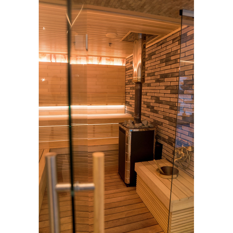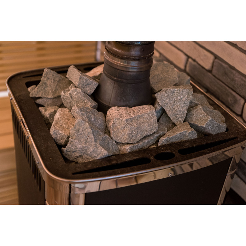 Houtsaunakachel - TMF KALINA VITRA. De kachel is gevuld met gemengde stenen - Finse olivijn en gebroken jadeïet.