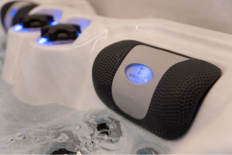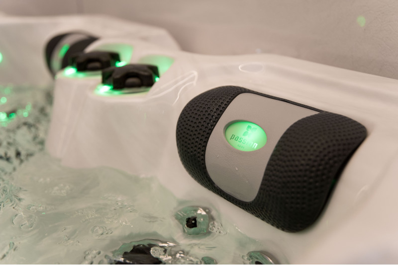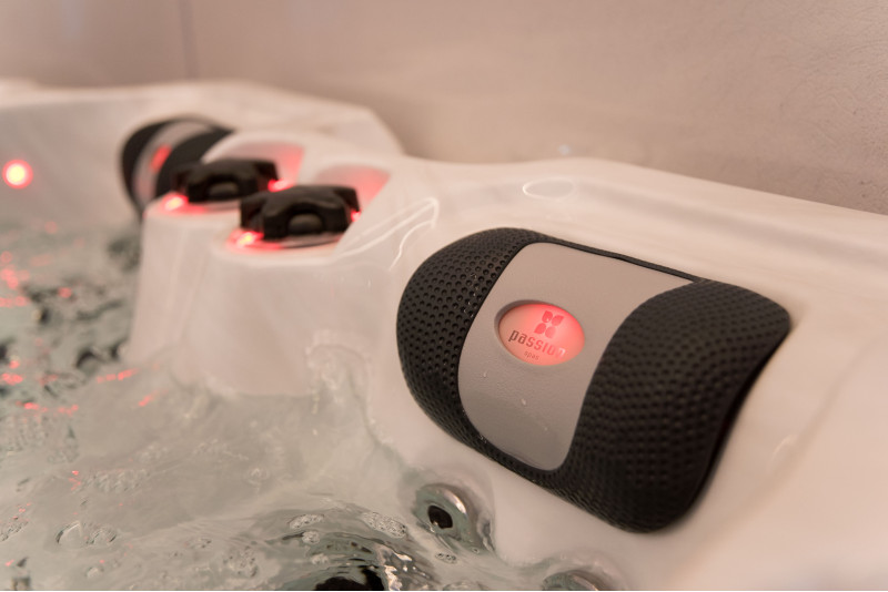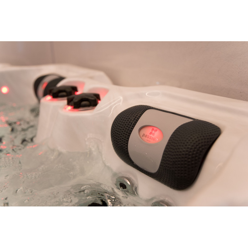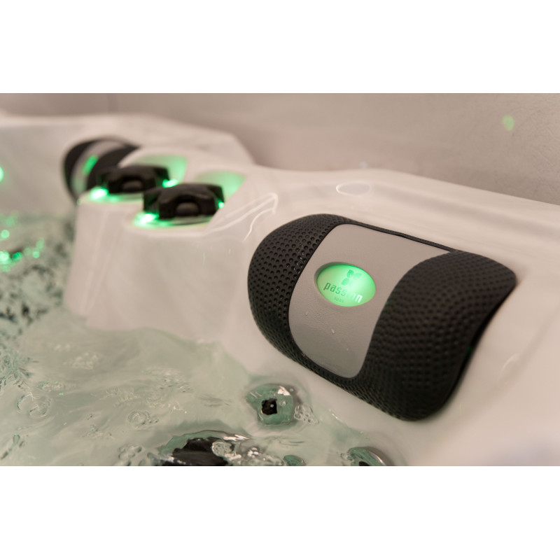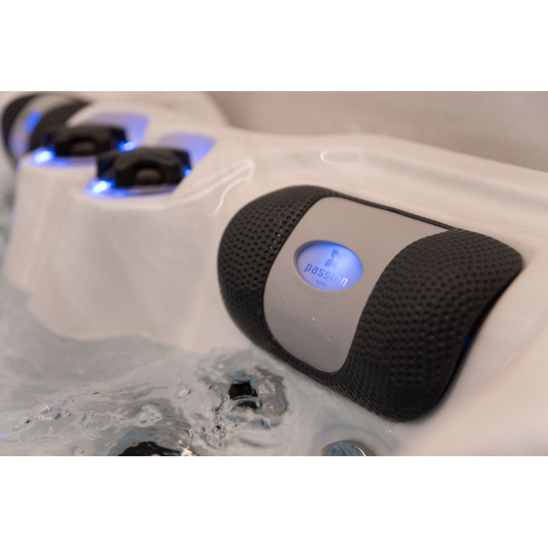 Het spabad is voorzien van gekleurde LED-verlichting, wat er vooral in het donker prachtig uitziet. Alle bedieningselementen en kussens zorgen voor accentverlichting die, in combinatie met het geïntegreerde geluidssysteem van Passion Spas, een magische ervaring creëert.