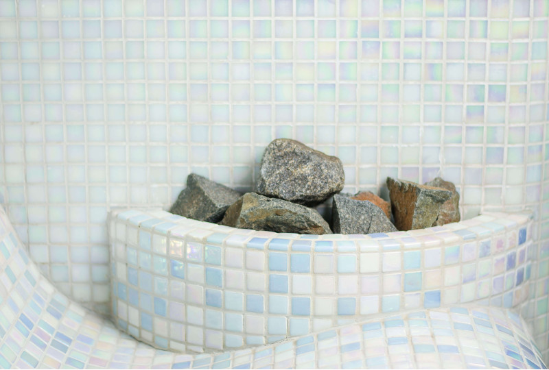 De sauna heeft ook een stoomvaas, die fungeert als een stoombeschermbuis waardoor stoom de sauna binnenkomt. De vaas is versierd met olivijn diabaasstenen.