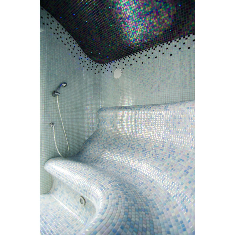 Stoomsauna banken, wanden en plafonds zijn individueel gemaakt van speciaal geëxtrudeerd polystyreen. De plafonds zijn boogvormig, typerend voor elke stoomkamer, zodat er zich geen stoomcondensaat kan ophopen. Zitposities, gebogen comfortabel gevormde banken voor een aangename rust in de sauna. De banken zijn gedraineerd om te voorkomen dat zweet en vocht zich ophopen.