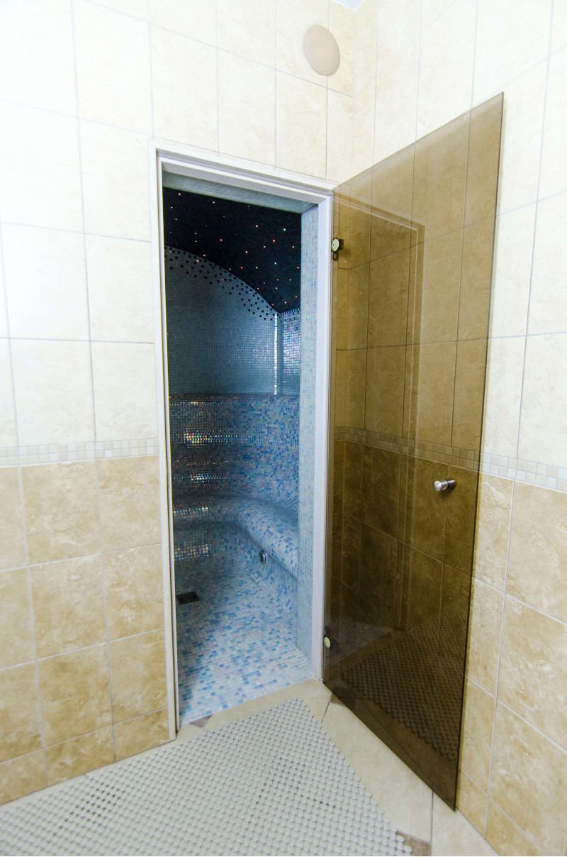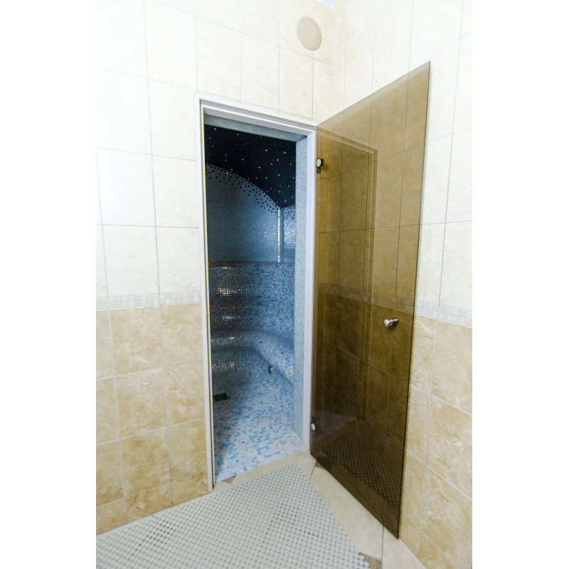 Glazen deuren worden op bestelling gemaakt. De deur is bestand tegen vocht en temperatuurschommelingen. Deurkozijn - marmer.