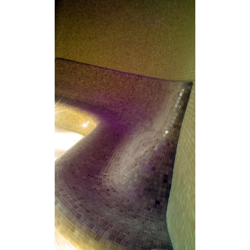 Uitgerust met gebogen banken met zit- en ligposities - voor comfortabel rusten en baden in de sauna. De banken zijn gedraineerd om te voorkomen dat zweet en vocht zich ophopen.