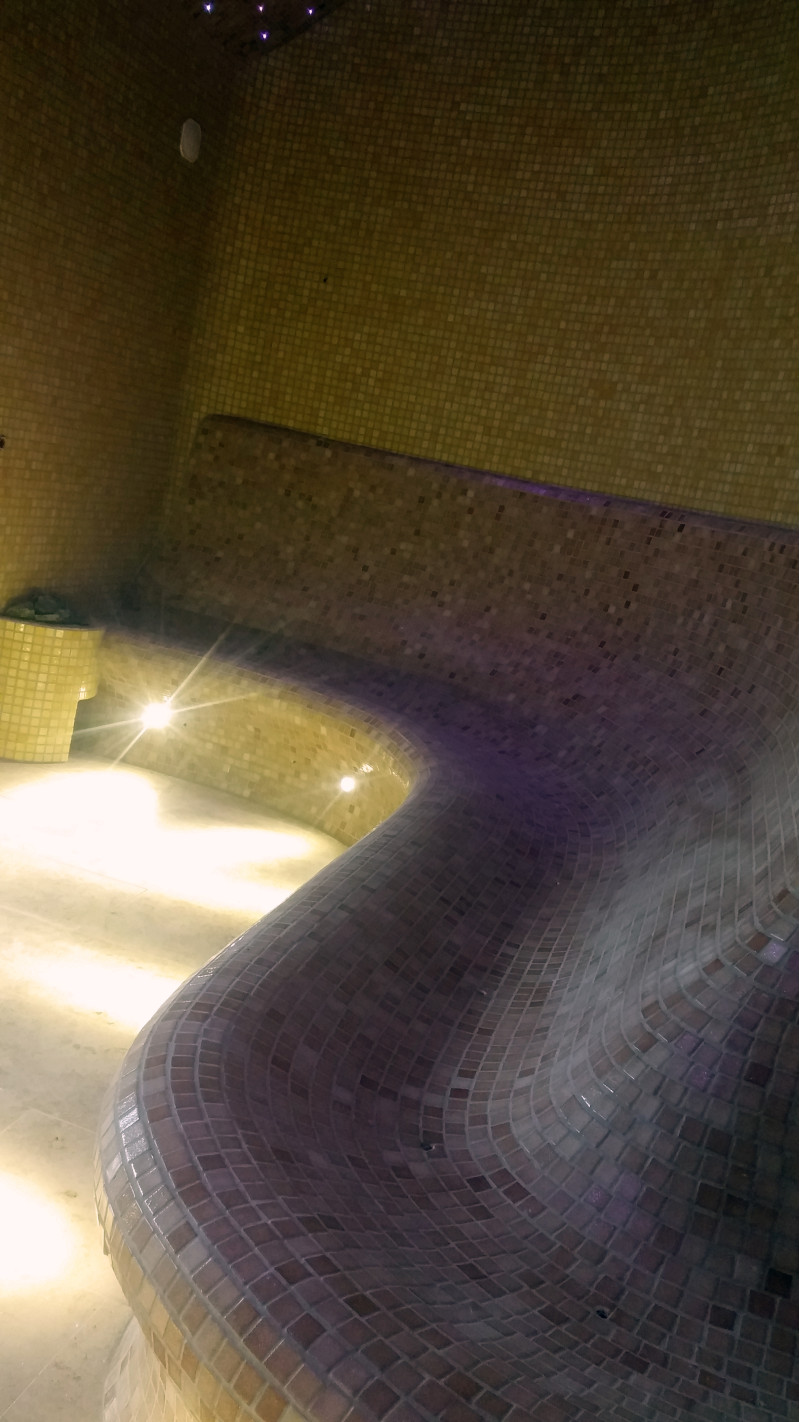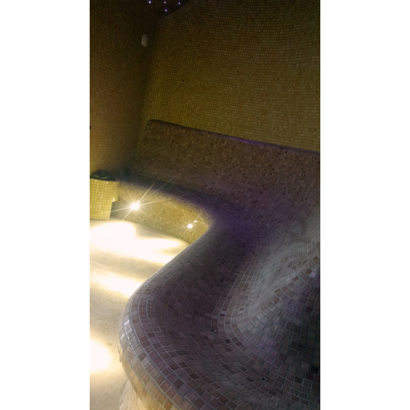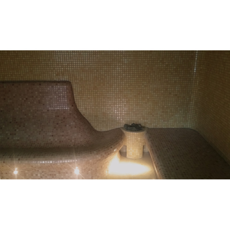 Stoomsauna banken, wanden en plafonds zijn individueel gemaakt van speciaal geëxtrudeerd polystyreen.