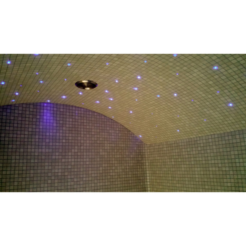 Het verlichtingssysteem is "sterrenhemel". Deze verlichting zorgt voor een indrukwekkend en gezellig uitzicht in de stoomsauna. Onder de ligstoelen is er verlichting om de vloer te verlichten.