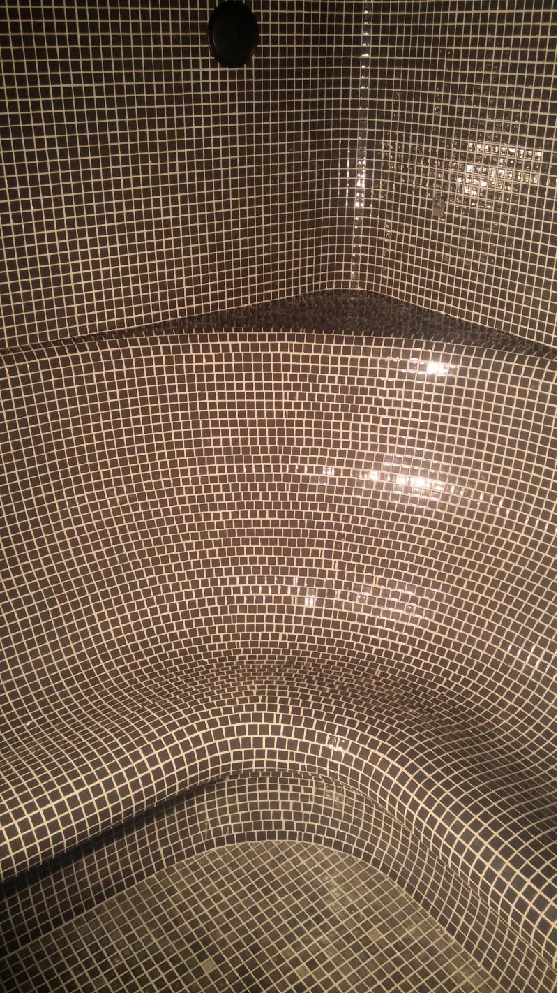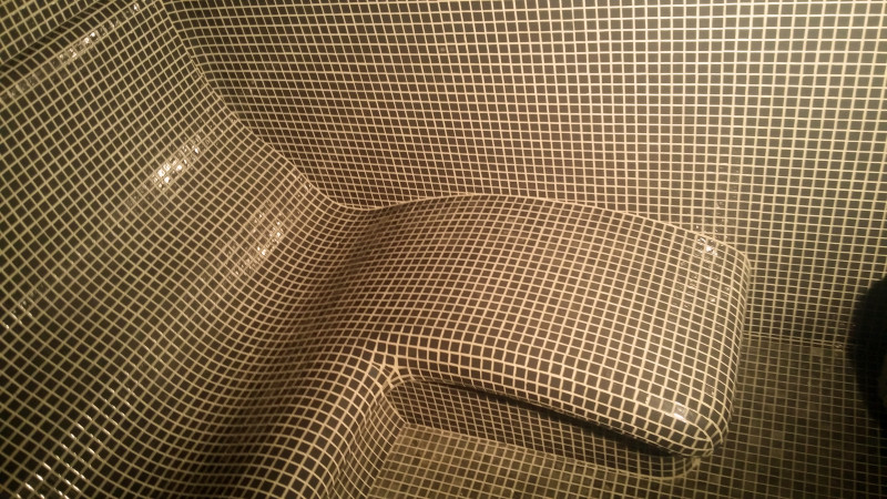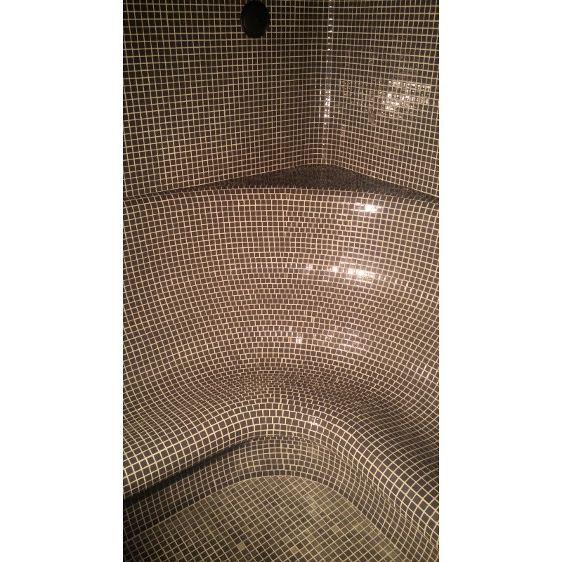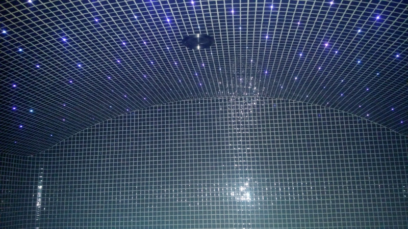 Afwerking - de hele sauna is versierd met gebroken glasmozaïektegels.