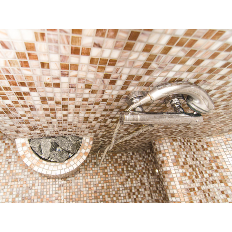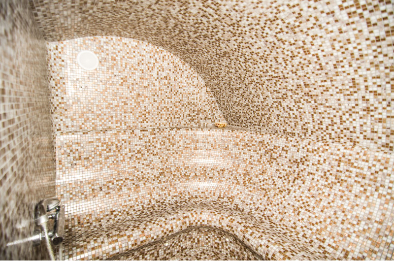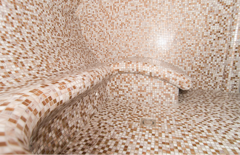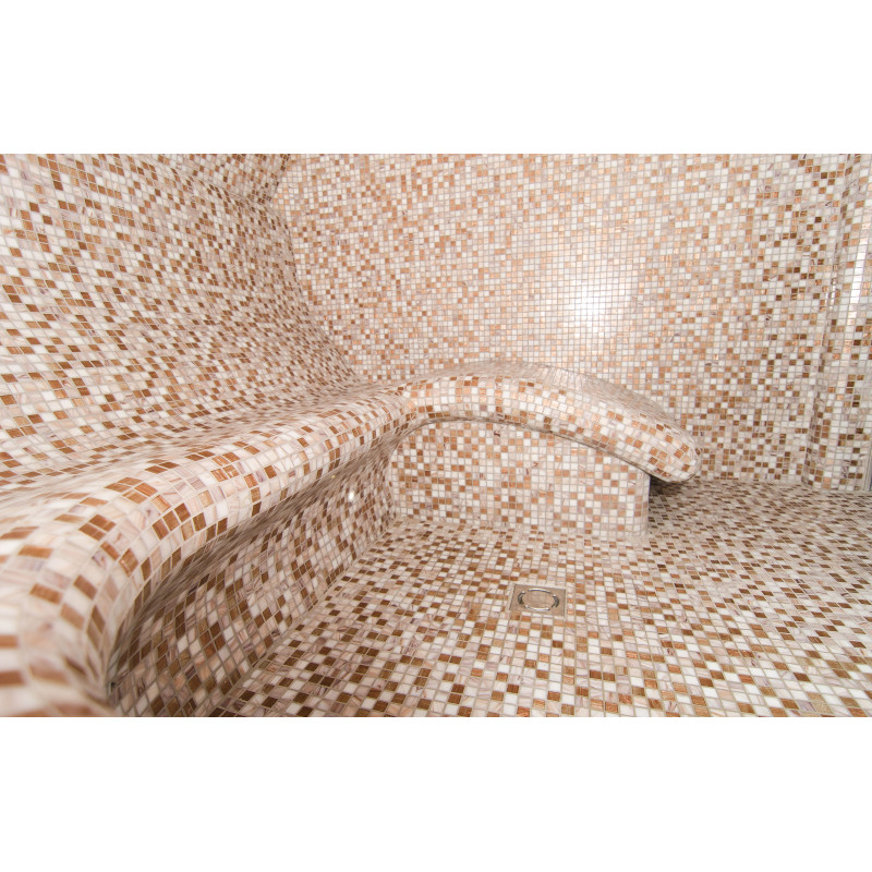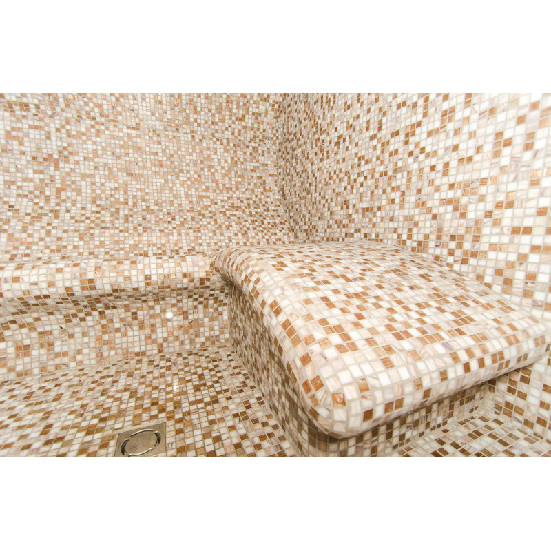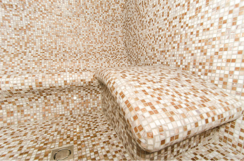 Stoomsauna banken, wanden en plafonds zijn individueel gemaakt van speciaal geëxtrudeerd polystyreen. Het plafond is een boogvorm die typerend is voor alle stoomsauna's.