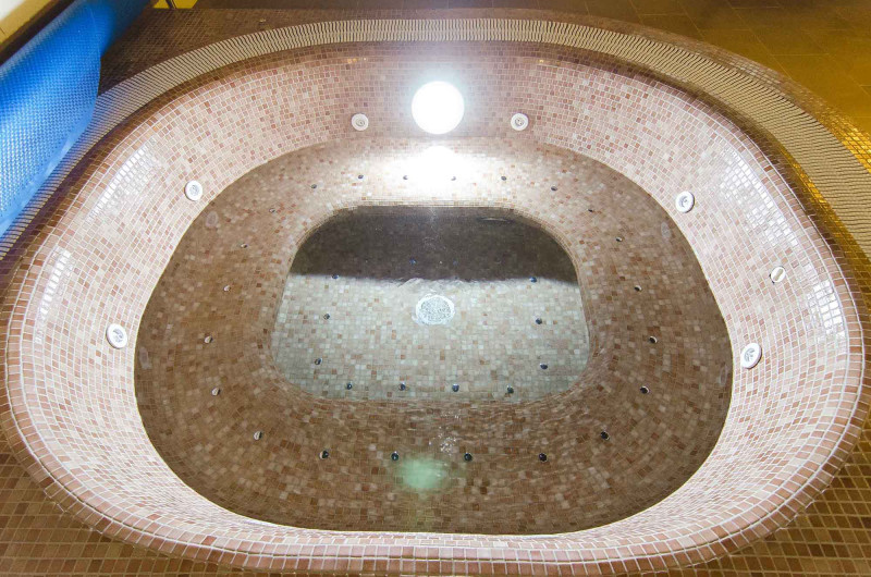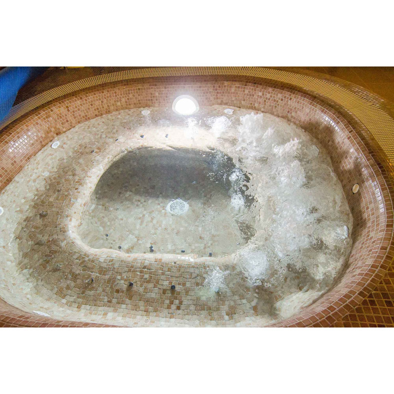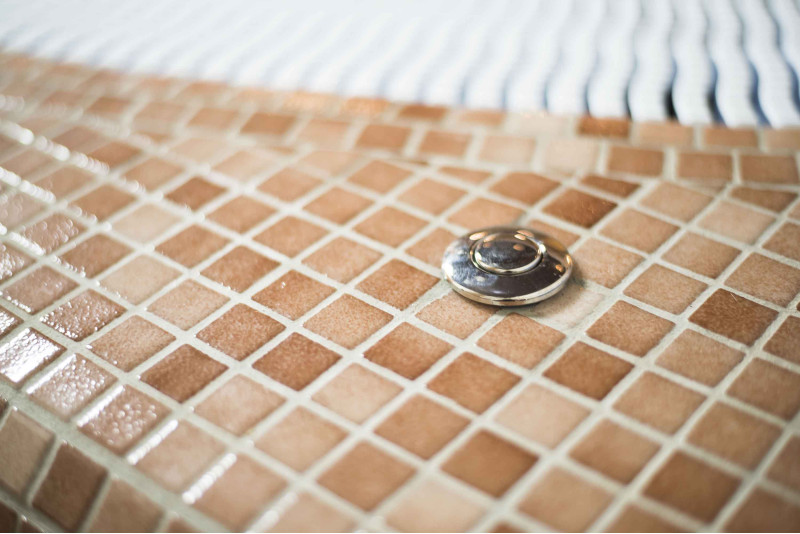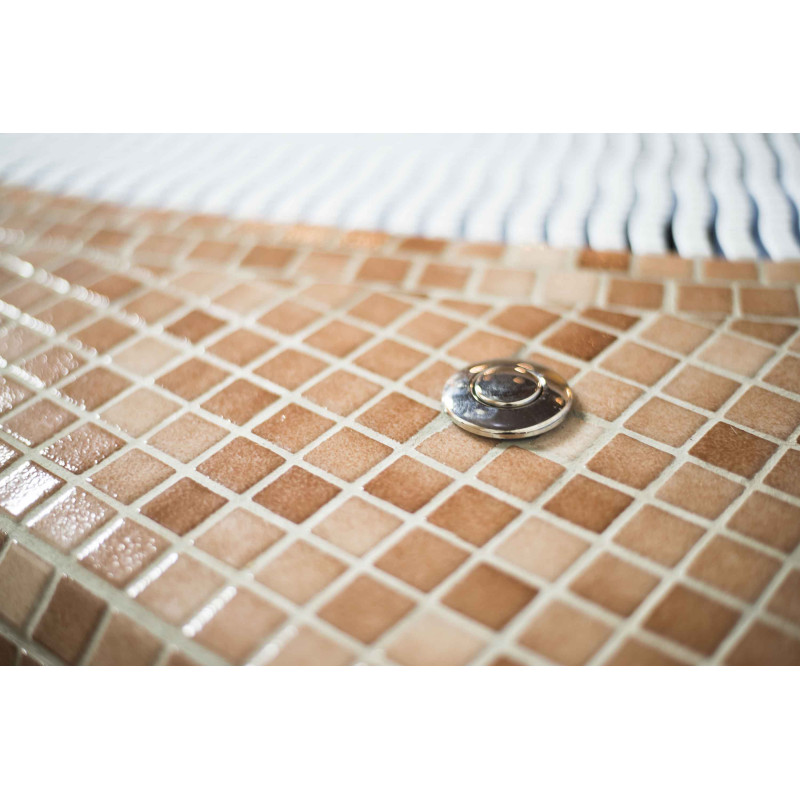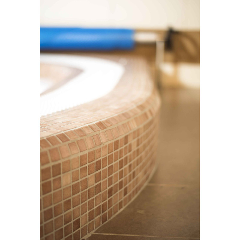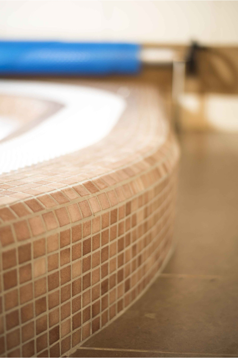 - Tegels - de binnen- en buitenkant van het zwembad zijn bedekt met neutraal gekleurd gebroken glasmozaïek.