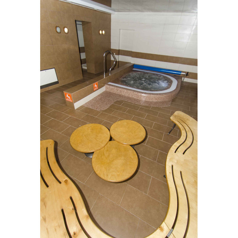 De vormen van de whirlpool zijn gemaakt van speciaal geëxtrudeerd polystyreen, volgens individuele bestelling. Het zwembad biedt plaats aan veel mensen tegelijk, aangezien er rondom het hele zwembad zitplaatsen zijn opgesteld.