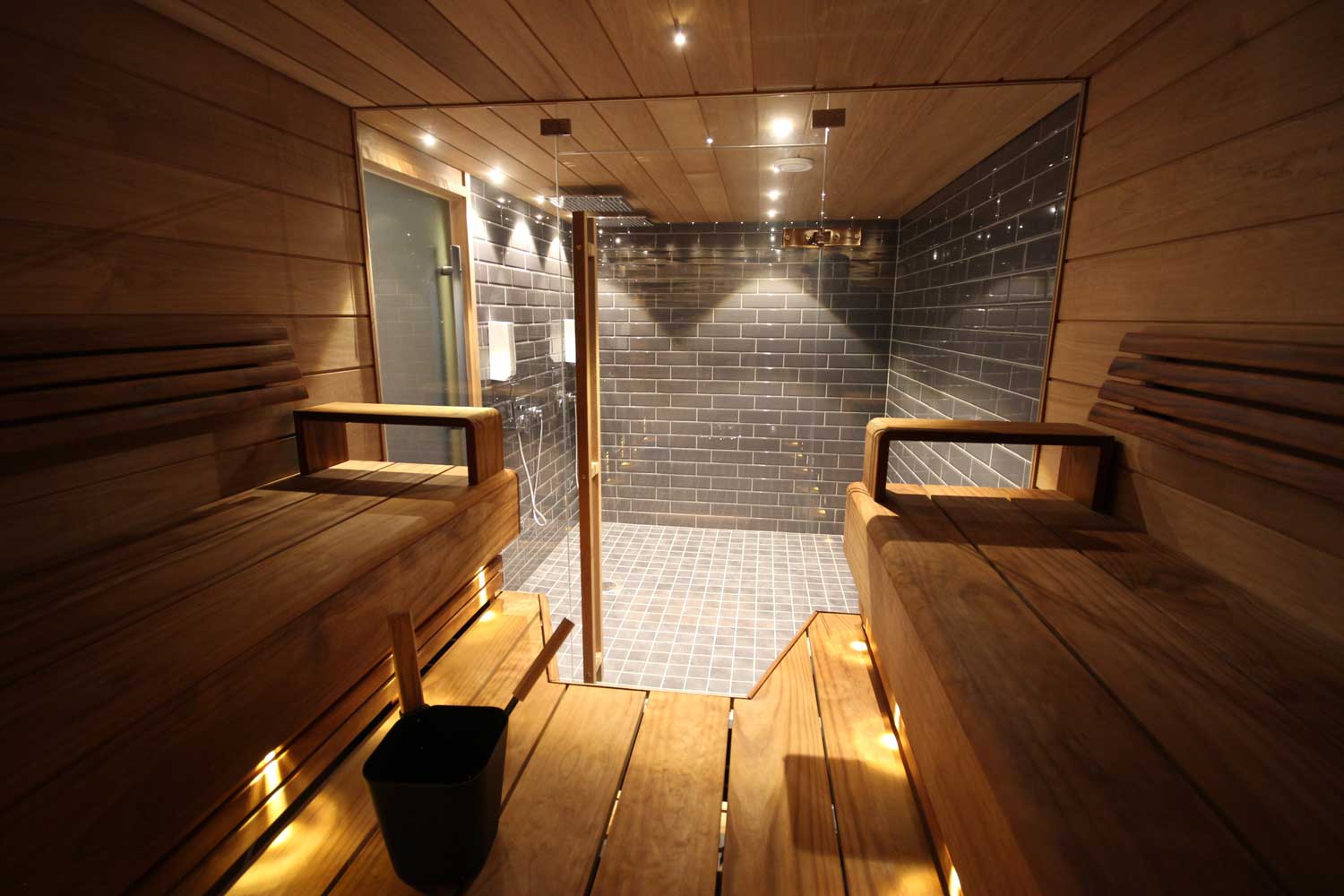• Sauna (Finse sauna) is een droge luchtsauna waar de luchtvochtigheid ongeveer 5-25 procent is en de temperatuur oploopt tot 70-110 graden Celsius. De optimale temperatuur is 80-90 graden. De warmte in de sauna wordt geregeld door water op de verwarmde stenen te gieten. Het wordt aanbevolen om er 2-3 keer in te zonnebaden tot het maximale zweten. Voor de eerste wandeling wordt het lichaam onder de douche bevochtigd en na het verlaten van de sauna wordt het gewassen onder een koele douche of bespat met water. De sauna wordt aanbevolen voor mensen die lijden aan allergieën, sinusitis, artritis, migraine, rugpijn. Kleine kinderen, zwangere vrouwen en ouderen wordt geadviseerd het niet te misbruiken.